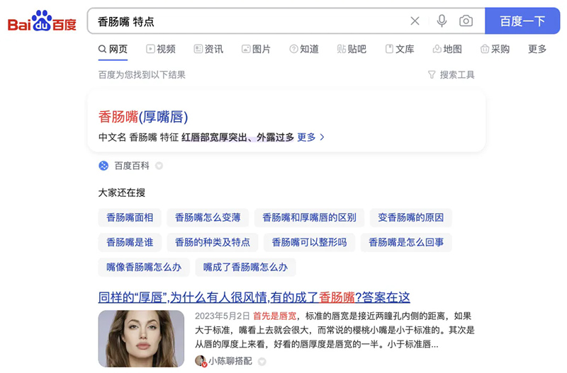 What is searching for Qifeng to draft? To put it simply, it means looking for references, summarizing patterns, identifying characteristics, and then using them in one's own design. What is the simplest way to search for Qifeng draft? As long as you type the keyword for this question in Baidu's search box, such as "Sausage Mouth Characteristics", you can search for multiple characteristics.